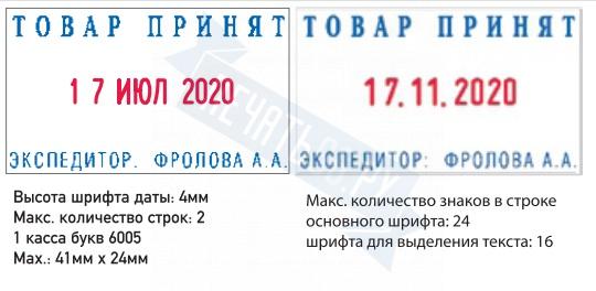 | Размер поля: 41 х 24 мм. Высота шрифта даты: 4 мм. |