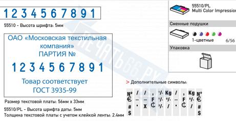 | Размер поля: 56 х 33 мм. Высота шрифта: 5 мм. |