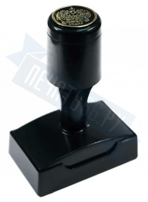 Ручная пластмассовая оснастка с крышкой для печати, штампа, факсимиле имеет клеевой слой для крепления клише печати.